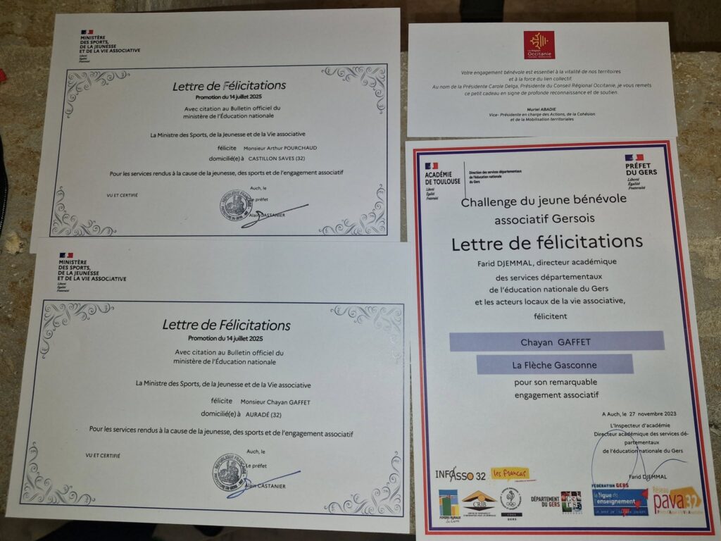 Chayan en a eu 2 : celle du Challenge du Jeune bénévole associatif gersois de 2023 (un petit rattrapage de dossier 😉 ) et celle du Ministère des sports, de la jeunesse et vie associative de cette année.